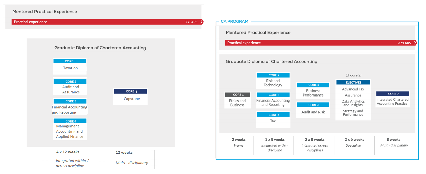 CA recently implemented its new post-graduate program for students who started after June 2021. Existing students under the old program can finalise their studies as it is slowly phased out.