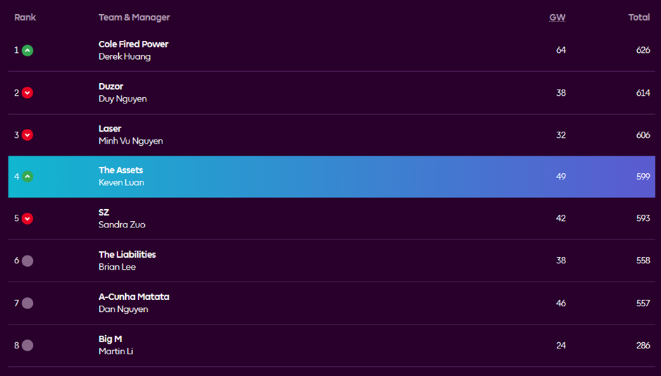 Keven’s The Assets (GW 49 / 2nd, Total 599 / 4th)