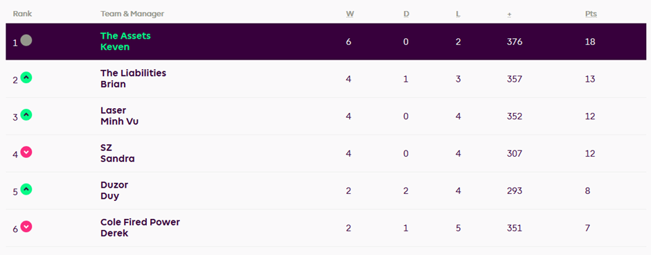 Top weekly score: Vu’s Laser with 93 points in GW 10.