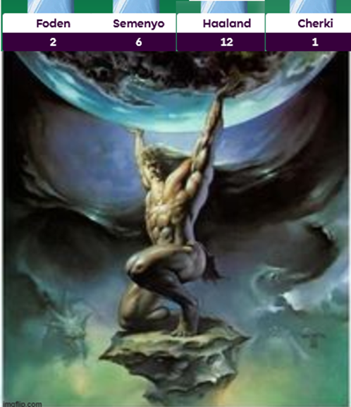 Brian now has four Man City players following Semenyo’s transfer. How long can he hold onto all of them? Will he knee jerk Cherki (1) out after a 17 minute cameo? Will he rage transfer Foden (2) out after five blanks in a row?