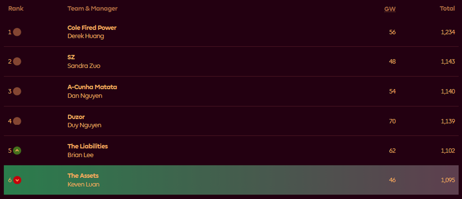 Keven’s The Assets (GW 46 / Last, Total 1,095 / Last)