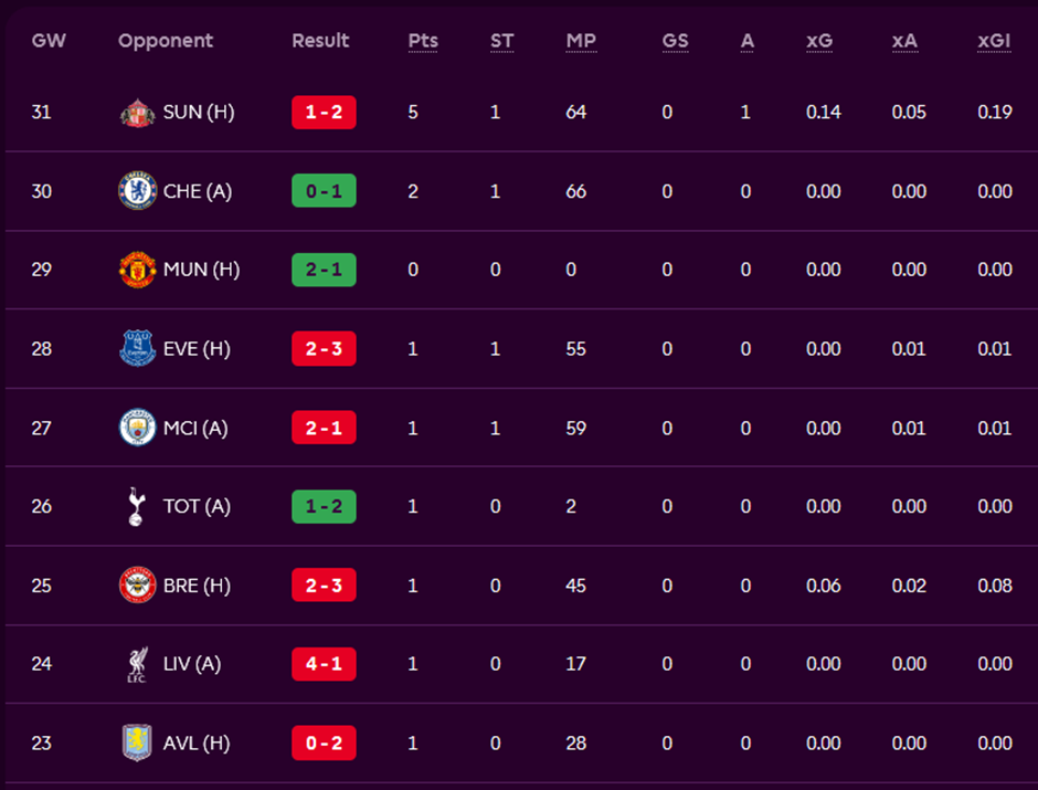 He immediately captained Raul (5 x 2 =10) and was blessed with a goal as Raul was only on the pitch for 8 minutes. Woltemade (5) is also known for being a minutes risk, and it’s honestly impressive he returned after blanking every match for the last 8 weeks.