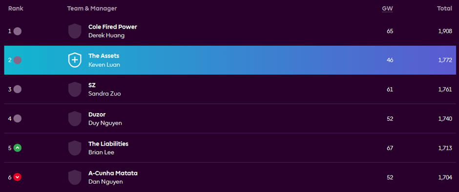 Keven’s The Assets (GW 46 / Last, Total 1,772 / 2nd)