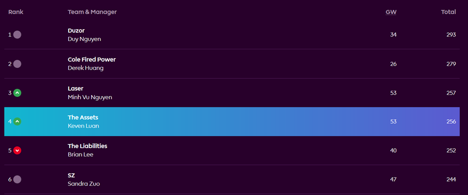 Keven’s The Assets (GW 53 / 2nd, Total 256 / 4th)