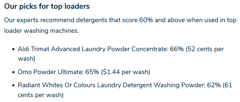 In laundry detergent, Aldi offers the best value for money.