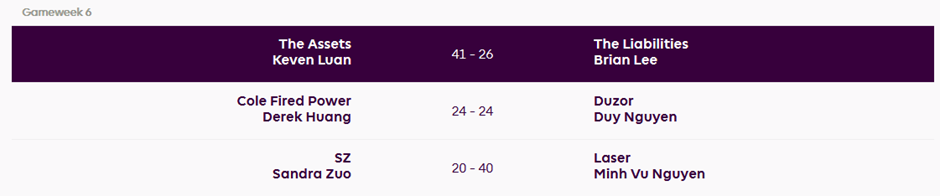 Keven’s The Assets (41, 2nd) def. Brian’s The Liabilities (26, 3rd)